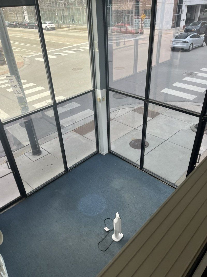 Commercial corner storefront w/balcony is ready for you to move-into Commercial space is facing northeast w/great street visibility! Beautiful slate flooring, security system, kitchenette & high ceiling! Great doctor's office/salon/boutique. Space has a 2 story entryway/reception, private offices and common area on each floor.